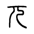 殷金文族徽像人側形而大其首,強調人的頭部。字應與元字相當。在六書中屬於獨體象形。篆文分析為從一在儿上。從一是由金文化點為橫的變形。字切割為二部件來理解,可商。