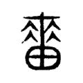 附注 朱駿聲《通訓定聲》:「此字本訓當為收穀,即穡之古文也。」商承祚《殷虛文字類編》:「卜辭从田,與許書嗇之古文合……穡字《禮記》皆作嗇,此穡、嗇一字之明證矣。」【按】甲骨文像禾穗露積在野之形。