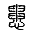 患,忧虑。字形采用“心”作边旁,心上一竖贯穿“吅”,“吅”同时也作声旁。