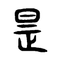 是,正、直。字形由“日、正”会义。所有与是相关的字,都采用“是”的边旁。