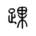 ,由「足」、「果」二字構成。從足,示足之部位之義。從果,聲符,注明音讀。楷書承自篆文而定體。在六書中屬於形聲。